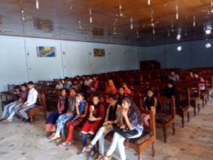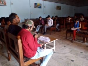 A new batch of students for the computer diploma are being examined by Divesh Rai ( second from right).