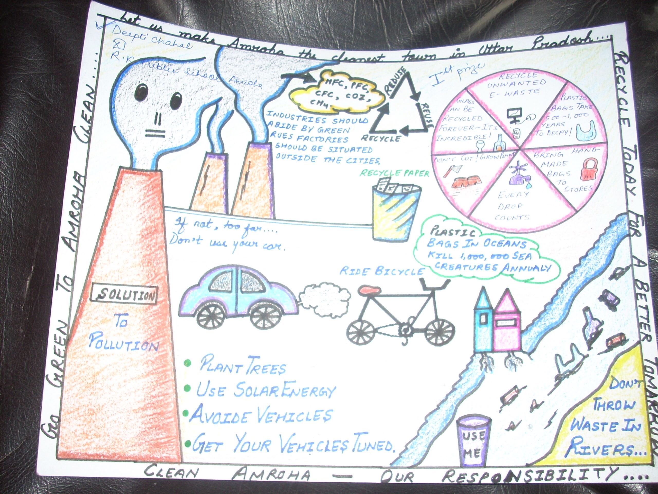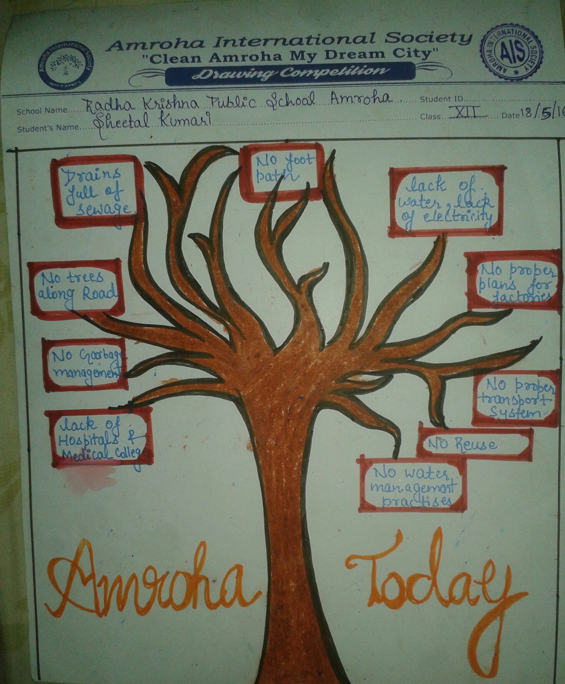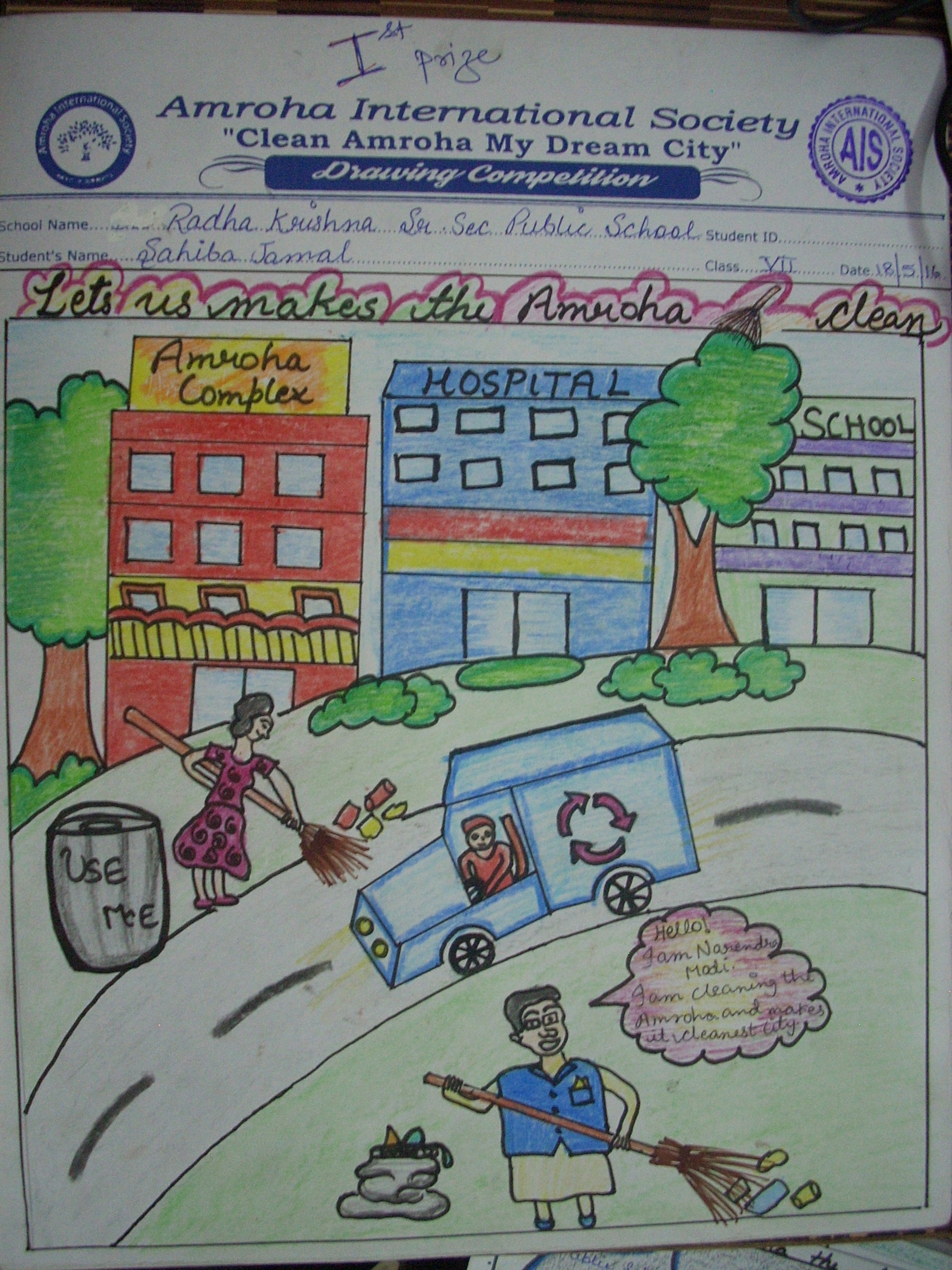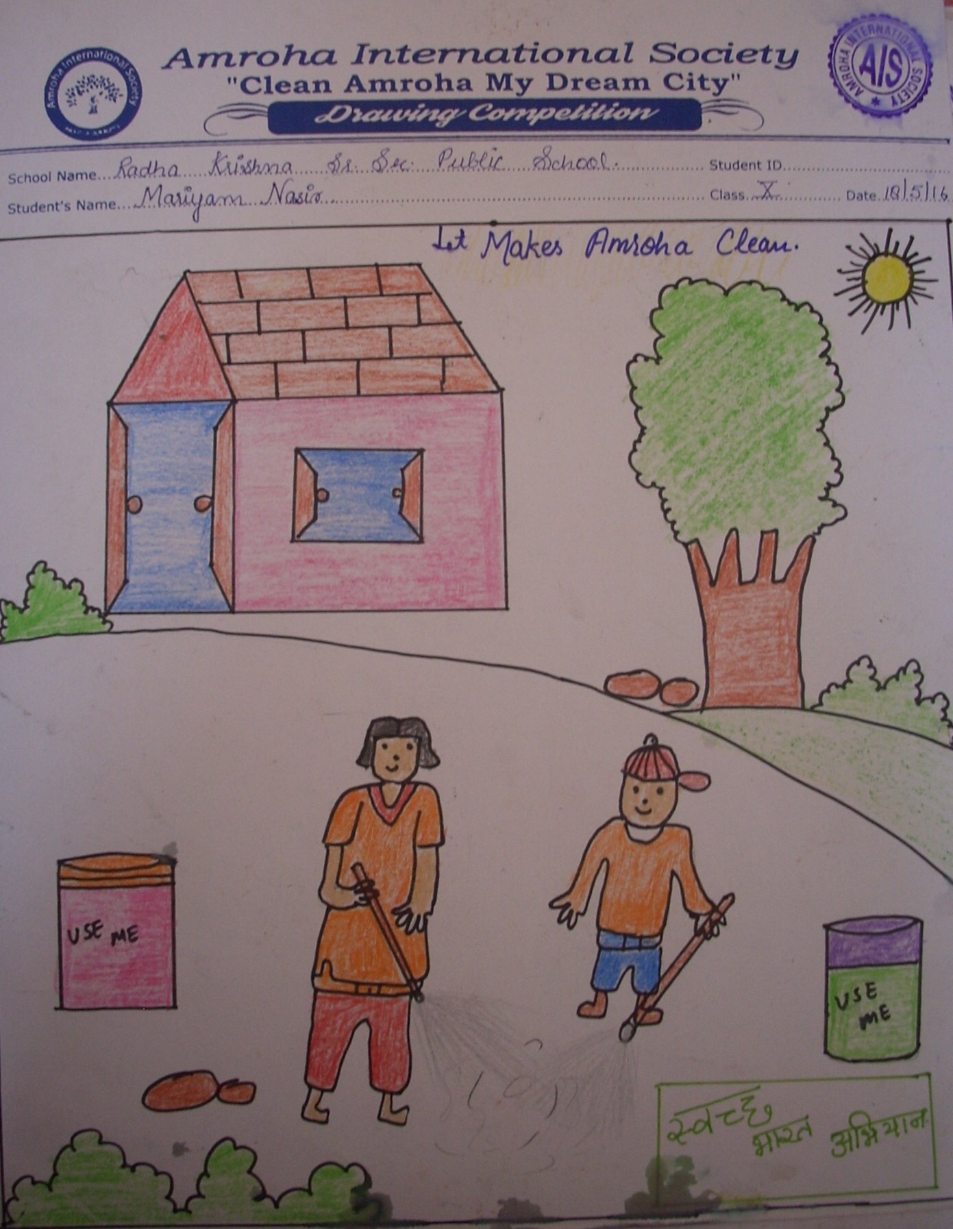 First prize drawings of the Drawing competition on 18 May on the subject ” Clean Amroha- my dream city”